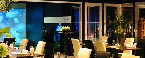 ゴルフ&レストランバーseasonでは、本物のゴルフ場さながらの映像をスクリーンに映した「ゴルフトレーニングマシーン」を完備し、本格的な練習にも初心者の方にも気軽にお楽しみいただけます。おひとり様でも仲間たちと宴会やパーティーにも最適です。